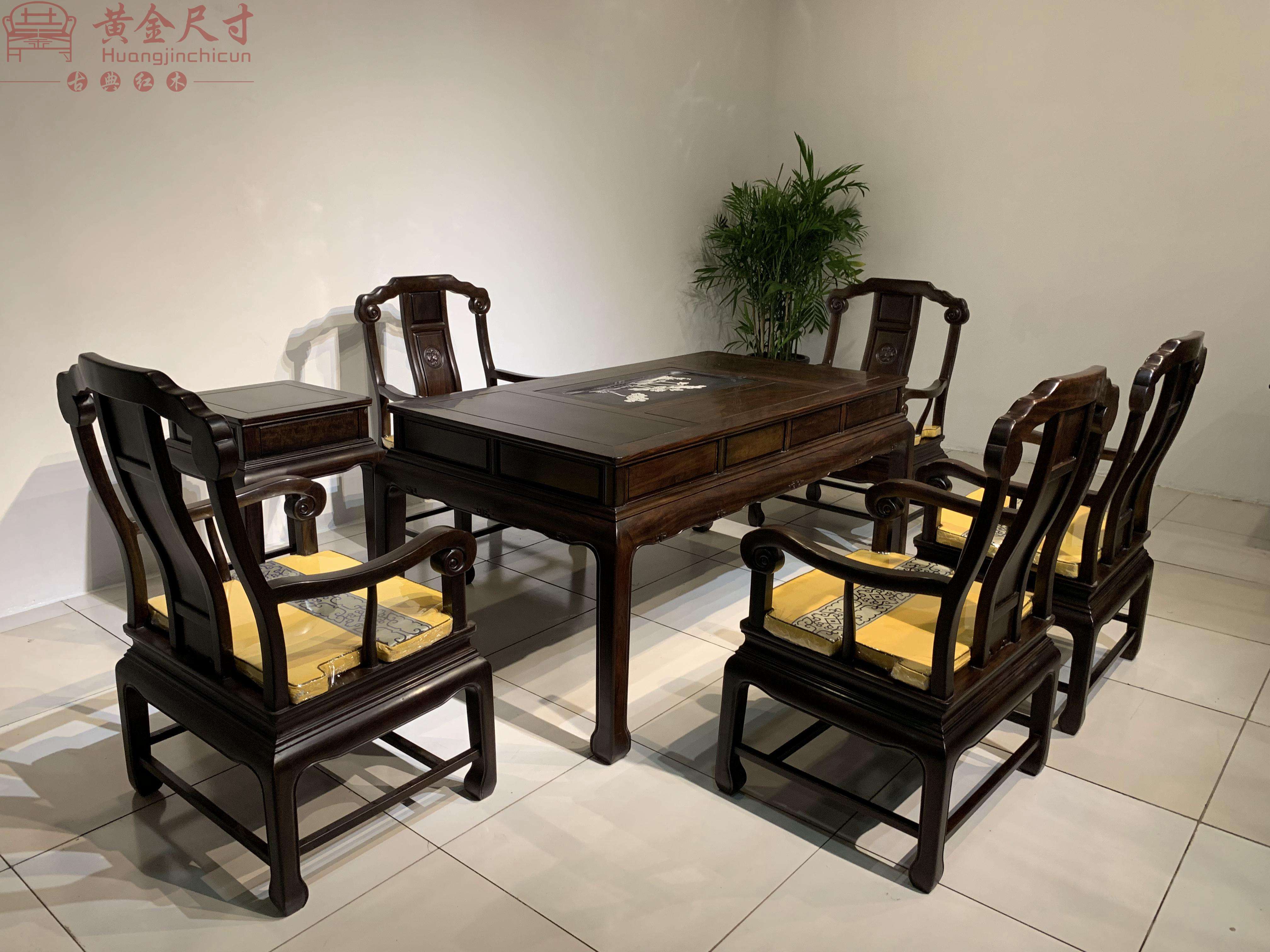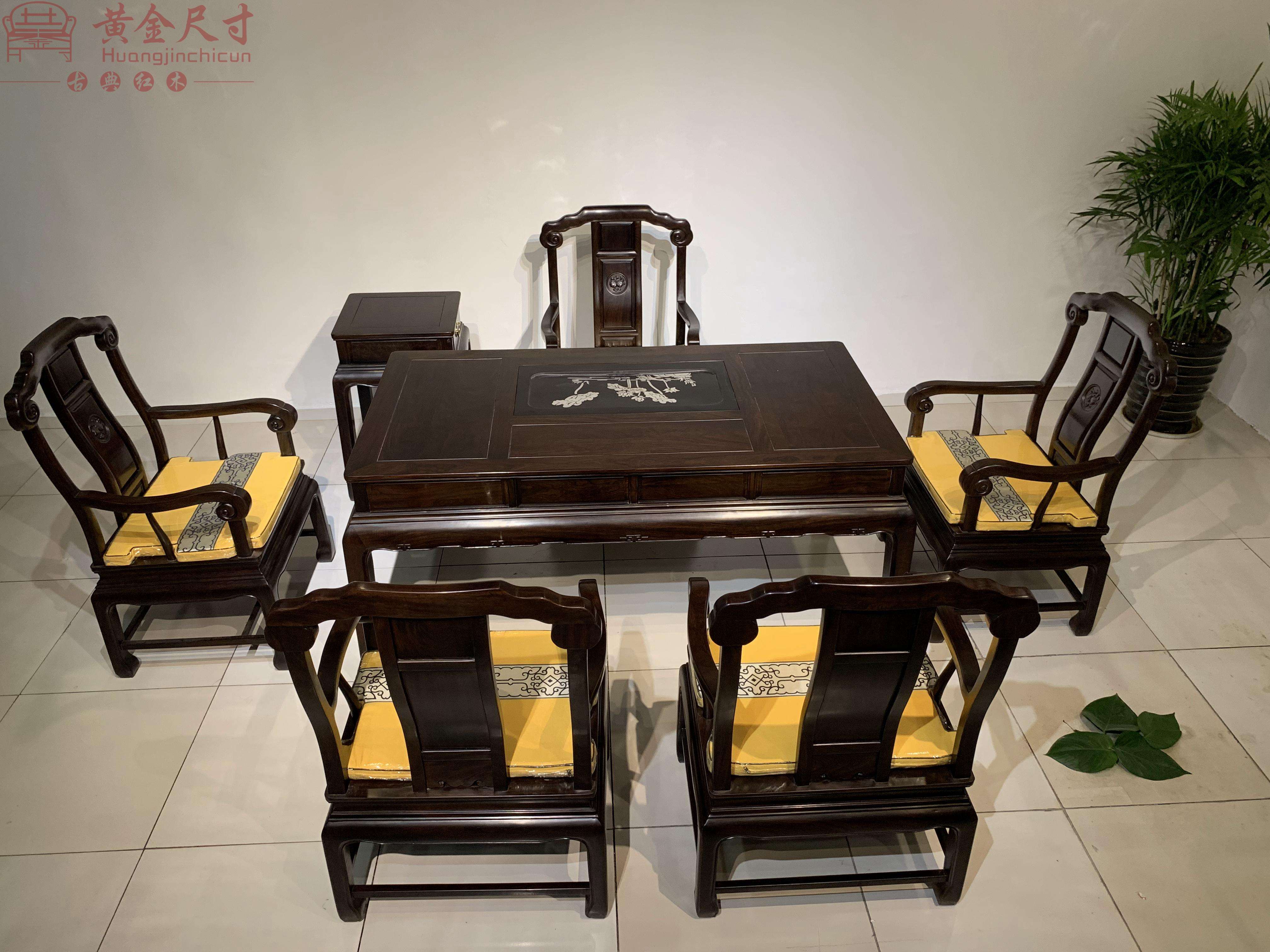 豪华办公茶台1张,茶台椅5张,边几1张