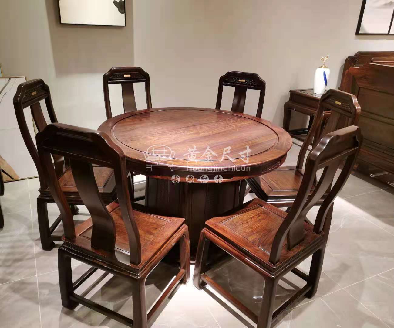 1.2米锦堂春圆台1张,锦堂春椅6张.